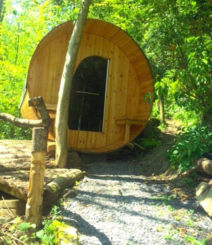 Nestled in 3 acres of peaceful Welsh woodland, our retreat offers stunning views and natural landscape.